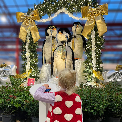 In ons tuincentrum vind je ook dit jaar weer de zingende pinguins! Ze zullen hun kerstrepetoire weer in volle glorie ten gehore brengen. Kun jij alle kerstliedjes meezingen? En wist je dat ze dit jaar verstrerking hebben gekregen! In de entree van ons tuincentrum vind je vrolijk zingende rendieren. Samen zorgen ze voor de nodige muzikale omlijsting tijdens de kerstperiode. Hoe leuk!