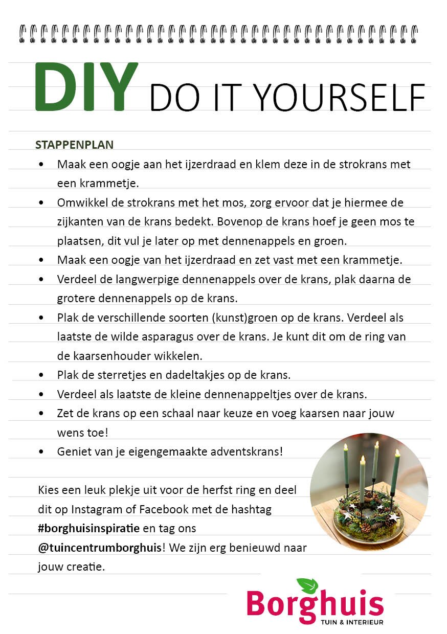 Bent u op zoek naar DIY-tas Adventskrans? Bij Tuincentrum Borghuis Hengelo, Enschede, Oldenzaal en Borne in Twente vindt u DIY-tas Adventskrans en vele andere artikelen. U kunt op deze pagina meer informatie DIY-tas Adventskrans bekijken. Uiteraard kunt u DIY-tas Adventskrans kopen in ons tuincentrum. Wilt u langskomen? Bekijk hier de openingstijden. Graag tot snel!