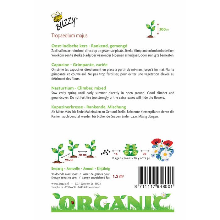 Bent u op zoek naar Tropaeolum, Oost-Indische kers enkelbl (BIO)? Bij Tuincentrum Borghuis Hengelo, Enschede, Oldenzaal en Borne in Twente vindt u Tropaeolum, Oost-Indische kers enkelbl (BIO) en vele andere artikelen. U kunt op deze pagina meer informatie Tropaeolum, Oost-Indische kers enkelbl (BIO) bekijken. Uiteraard kunt u Tropaeolum, Oost-Indische kers enkelbl (BIO) kopen in ons tuincentrum. Wilt u langskomen? Bekijk hier de openingstijden. Graag tot snel!